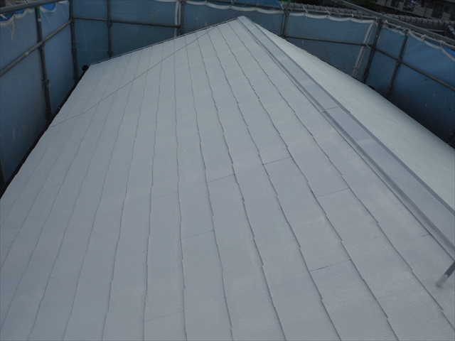 - 丁寧にもう一度上塗りして、屋根塗装が仕上がりました。