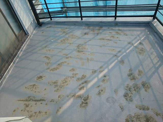 - ベランダも、汚れや塗膜の劣化が気になる状態です。