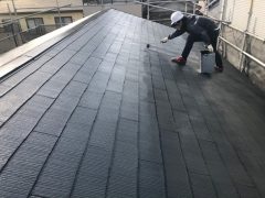- 屋根の下塗りですこちらも二回塗りです。UVコートルーフプライマーを使用しております。